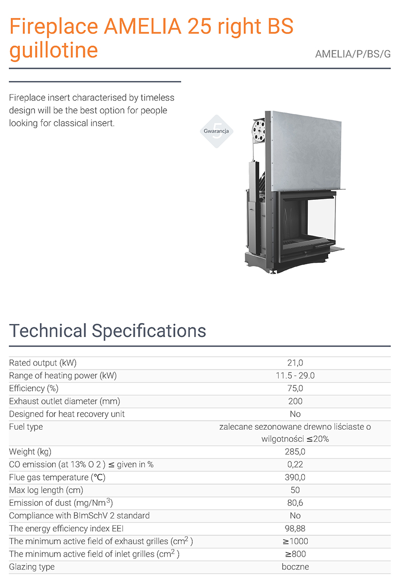 KRATKI AMELIA/P/BS/G ΔΕΞΙΑ ΓΩΝΙΑ 21KW / 200-250m2 ΕΝΕΡΓΕΙΑΚΟ ΤΖΑΚΙ ΜΑΝΤΕΜΕΝΙΟ ΜΕ ΣΥΡΟΜΕΝΗ ΠΟΡΤΑ