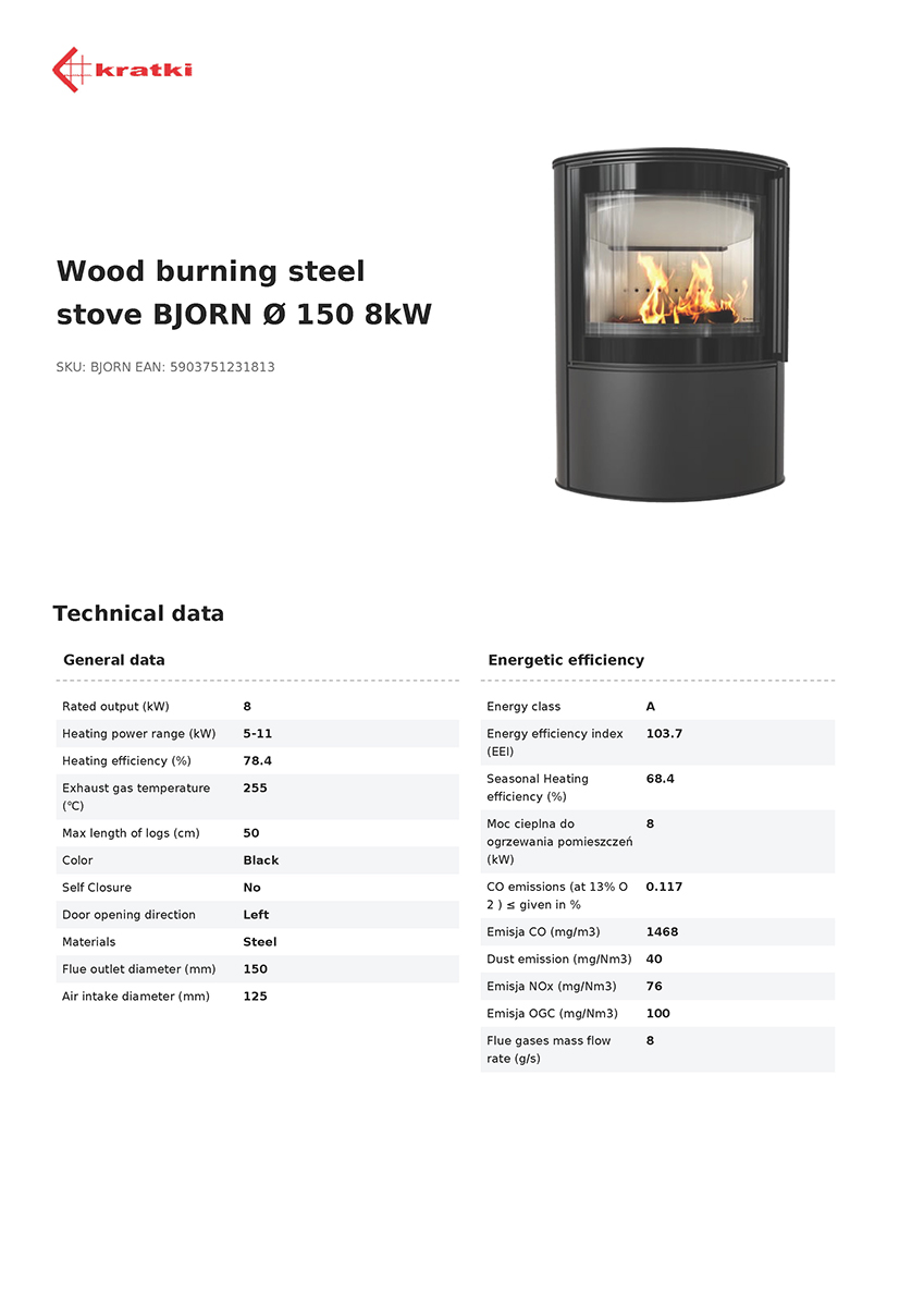 The BJORN stove is distinguished by a generous panoramic GLASS window with an aesthetically pleasing black décor, which provides a perfect view of the flames. This not only gives it an elegant look, but also makes it an attractive decorative element.