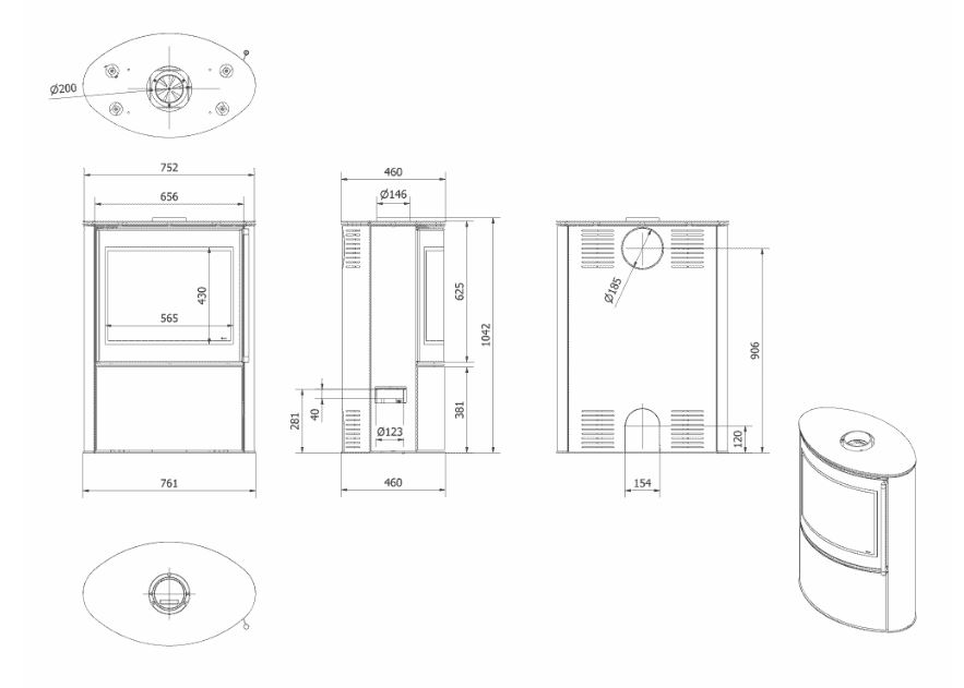 – easier stove installation thanks to the Ø200mm hole in the base,