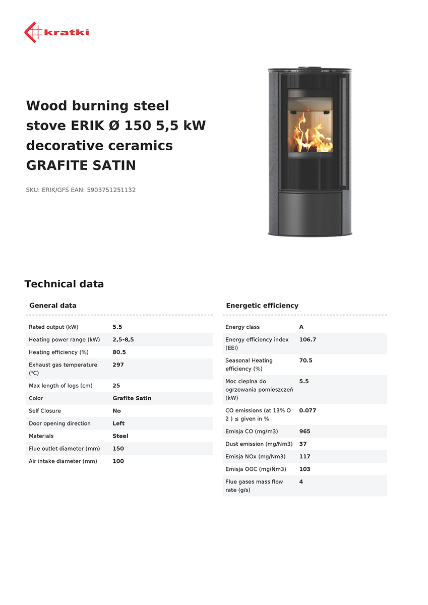 ERIK is a modern freestanding stove that not only provides an exceptional source of heat, but also fits in with the highest ecological standards. Thanks to the use of advanced technologies, ERIK guarantees optimum energy utilisation, which translates into efficient and economical heating of the interior. Its modern design adds elegance to any room while providing unparalleled comfort.