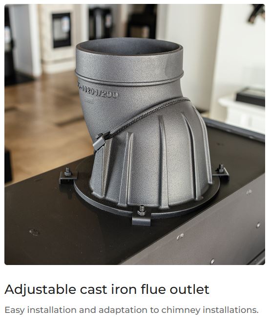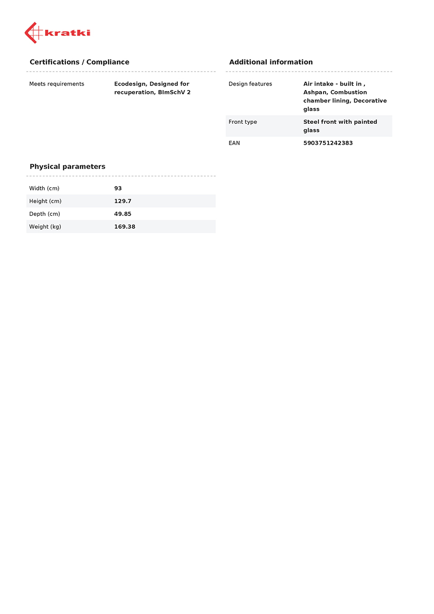 FLOKI combines elegant aesthetics with advanced combustion technology, blending perfectly with any modern interior. The elegant design with decorative GLASS glass not only visually enlarges the space, but also allows you to enjoy the view of the dancing flames. Lining the combustion chamber with TERMOTEC material ensures longer temperature maintenance and more efficient combustion, which increases the temperature in the firebox and aids the afterburning of fuel particles, minimising harmful emissions.