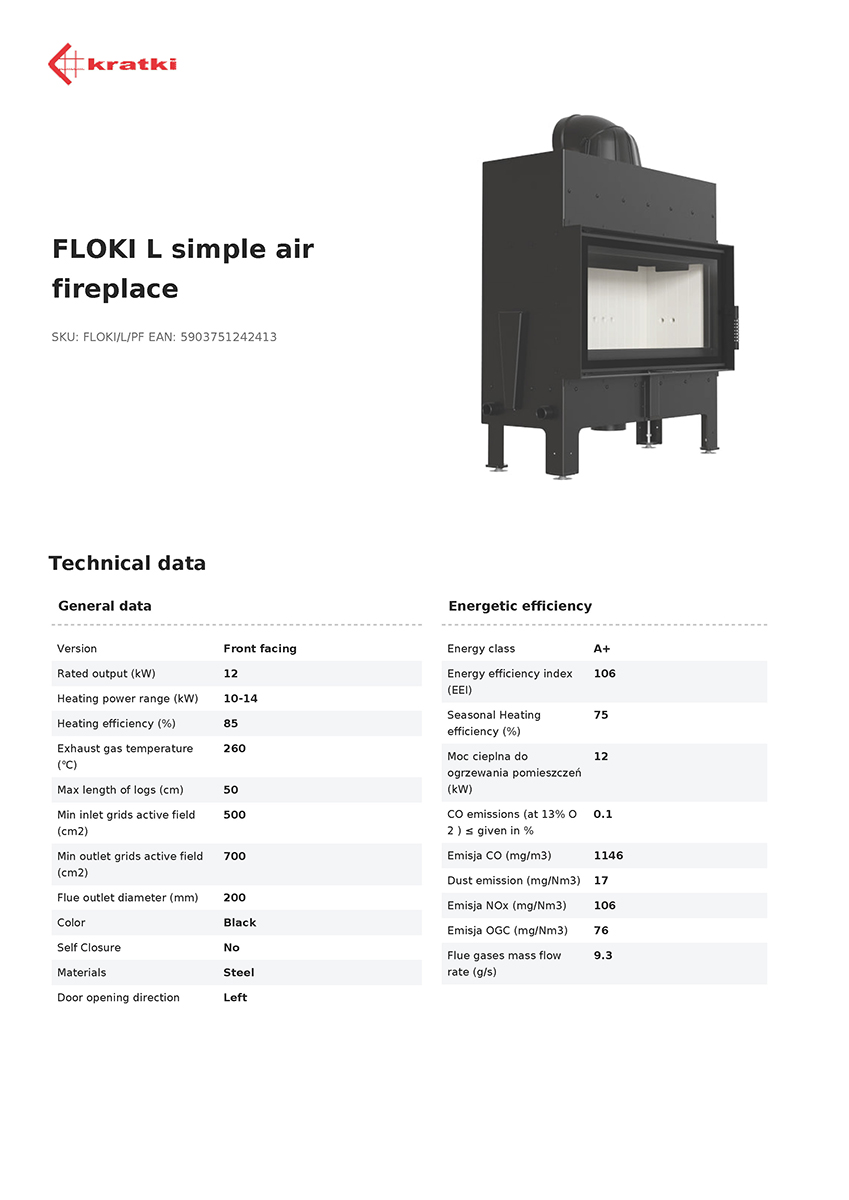 FLOKI combines elegant aesthetics with advanced combustion technology, blending perfectly with any modern interior. The elegant design with decorative GLASS glass not only visually enlarges the space, but also allows you to enjoy the view of the dancing flames. Lining the combustion chamber with TERMOTEC material ensures longer temperature maintenance and more efficient combustion, which increases the temperature in the firebox and aids the afterburning of fuel particles, minimising harmful emissions.