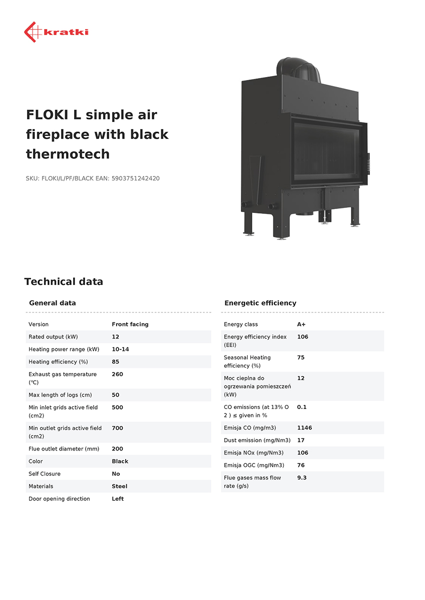 FLOKI combines elegant aesthetics with advanced combustion technology, blending perfectly with any modern interior. The elegant design with decorative GLASS glass not only visually enlarges the space, but also allows you to enjoy the view of the dancing flames. Lining the combustion chamber with TERMOTEC material ensures longer temperature maintenance and more efficient combustion, which increases the temperature in the firebox and aids the afterburning of fuel particles, minimising harmful emissions.