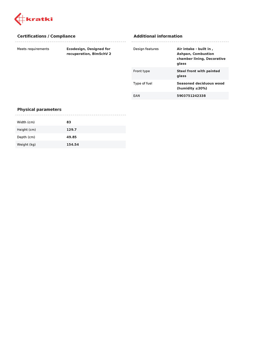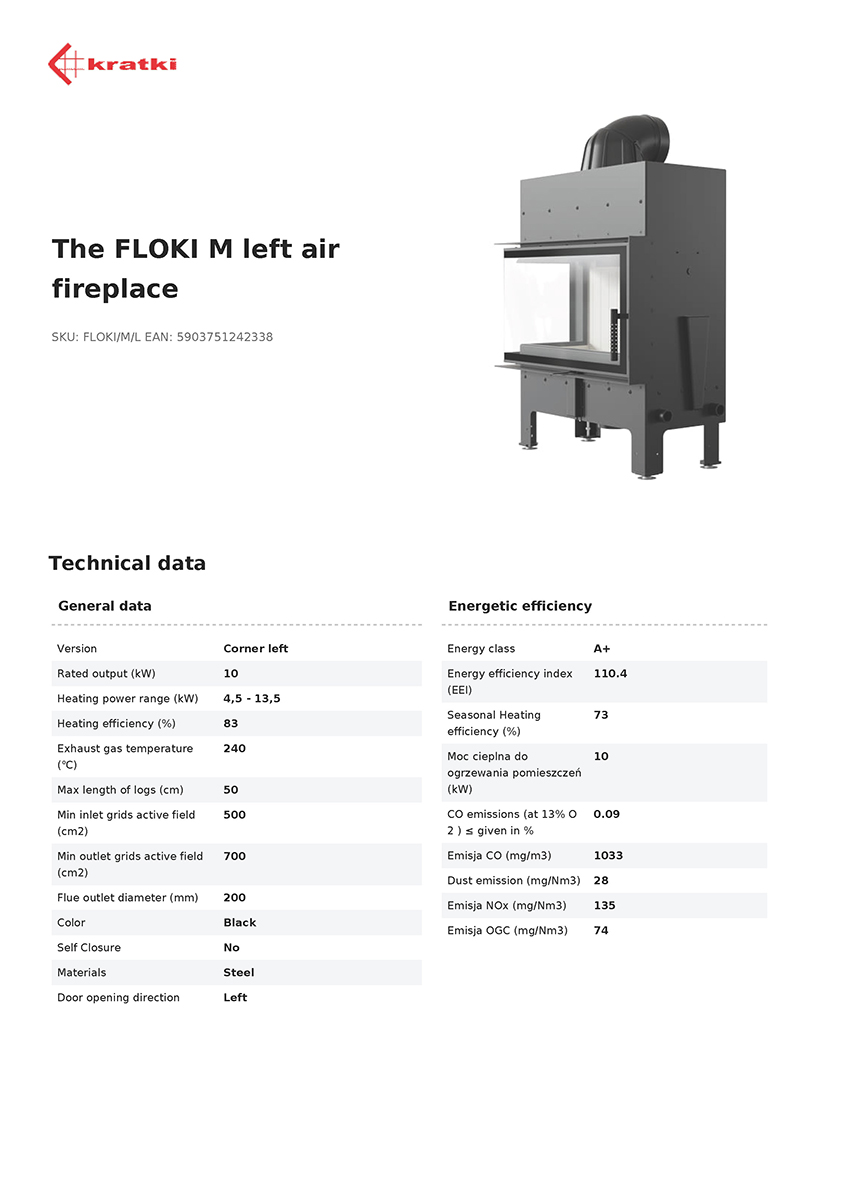 FLOKI combines elegant aesthetics with advanced combustion technology, blending perfectly with any modern interior. The elegant design with decorative GLASS glass not only visually enlarges the space, but also allows you to enjoy the view of the dancing flames. Lining the combustion chamber with TERMOTEC material ensures longer temperature maintenance and more efficient combustion, which increases the temperature in the firebox and aids the afterburning of fuel particles, minimising harmful emissions.