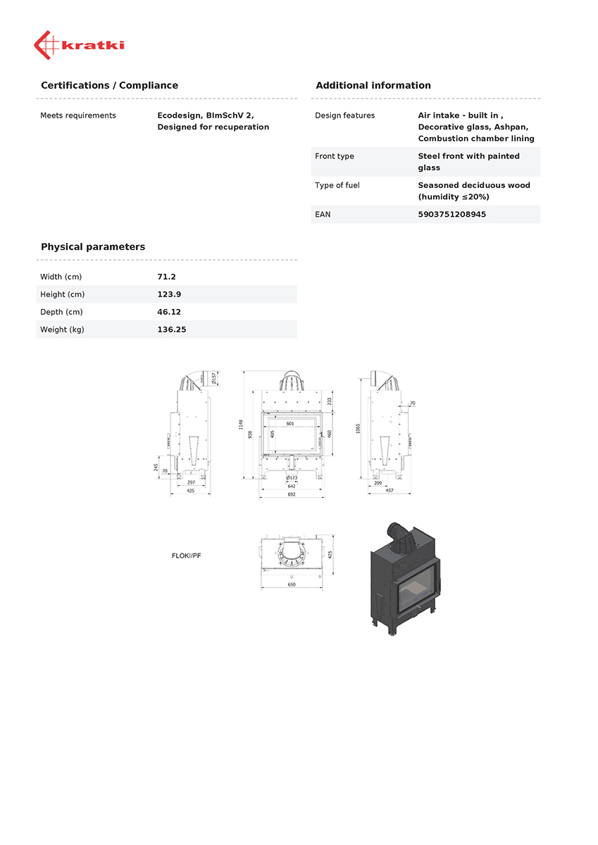 FLOKI combines elegant aesthetics with advanced combustion technology, blending perfectly with any modern interior. The elegant design with decorative GLASS glass not only visually enlarges the space, but also allows you to enjoy the view of the dancing flames. Lining the combustion chamber with TERMOTEC material ensures longer temperature maintenance and more efficient combustion, which increases the temperature in the firebox and aids the afterburning of fuel particles, minimising harmful emissions.