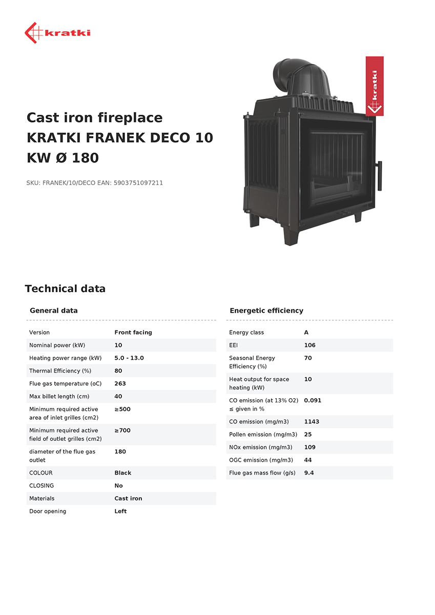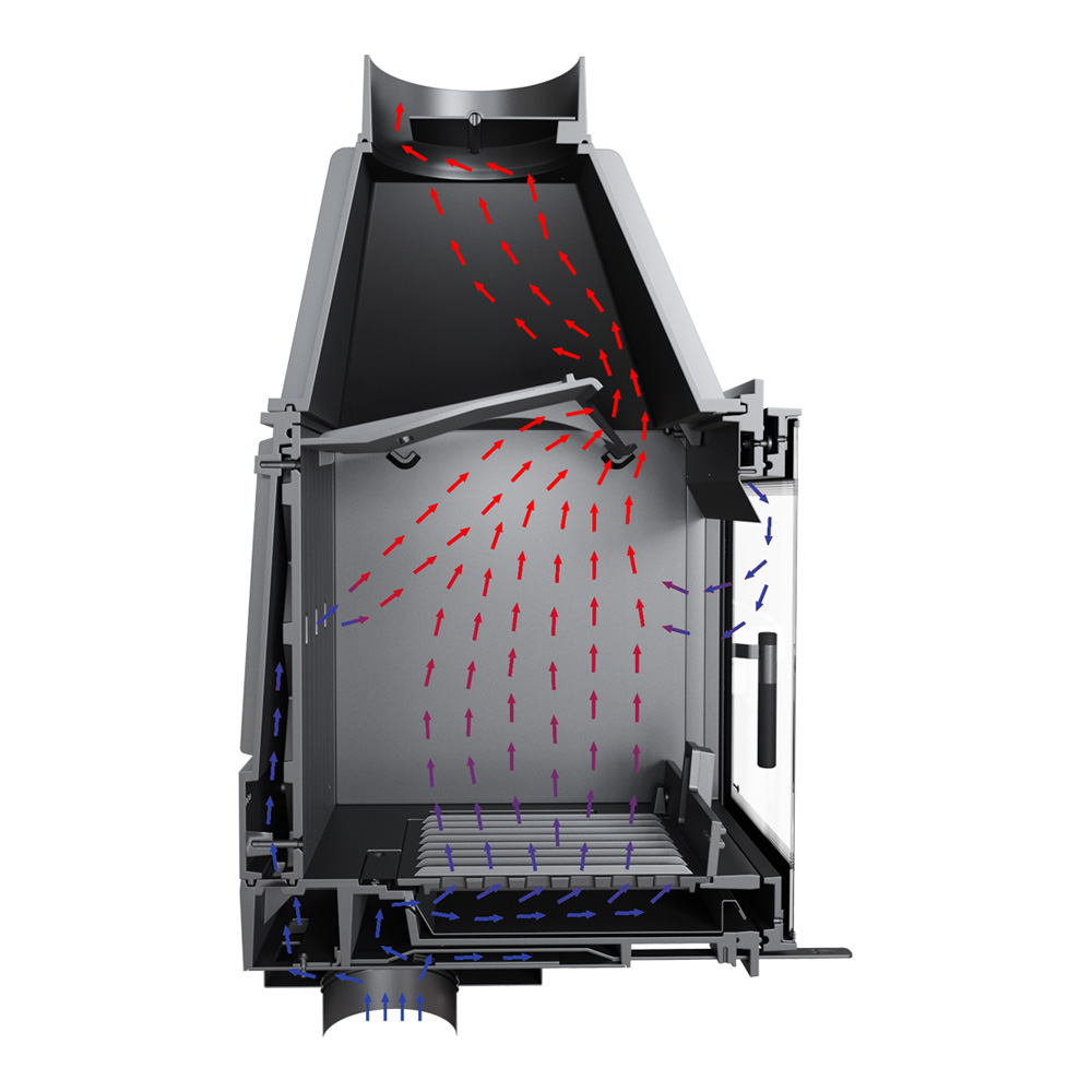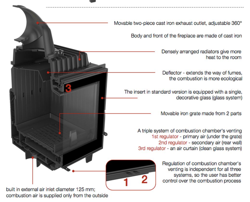 Maximum use of heat due to densely spaced radiators and the wall of the insert made of high quality cast iron with a thickness of 8 mm.