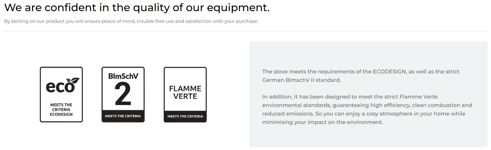 The stove meets the requirements of the ECODESIGN, as well as the strict German BlmschV II standard.