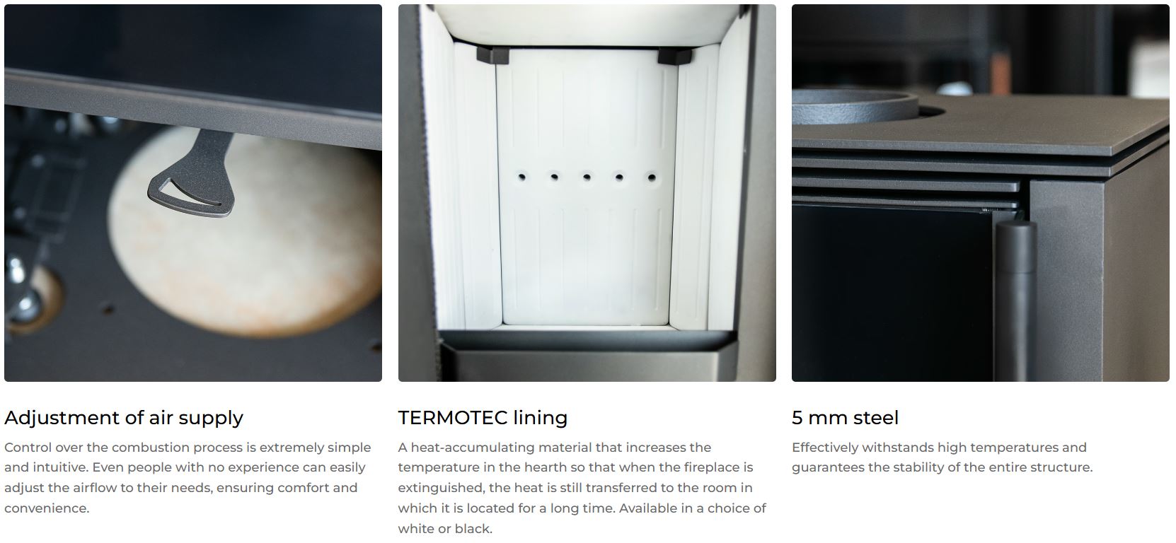 – longer temperature maintenance thanks to the TERMOTEC combustion chamber lining,