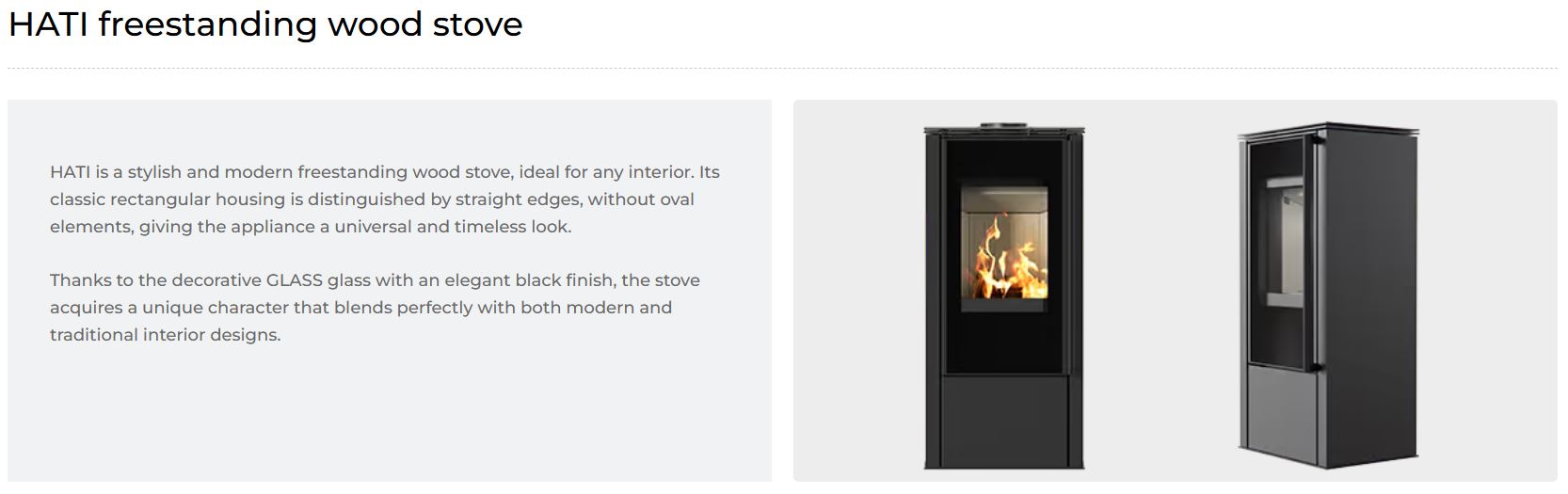 HATI is a stylish and modern freestanding wood stove, ideal for any interior. Its classic rectangular housing is distinguished by straight edges, without oval elements, giving the appliance a universal and timeless look.