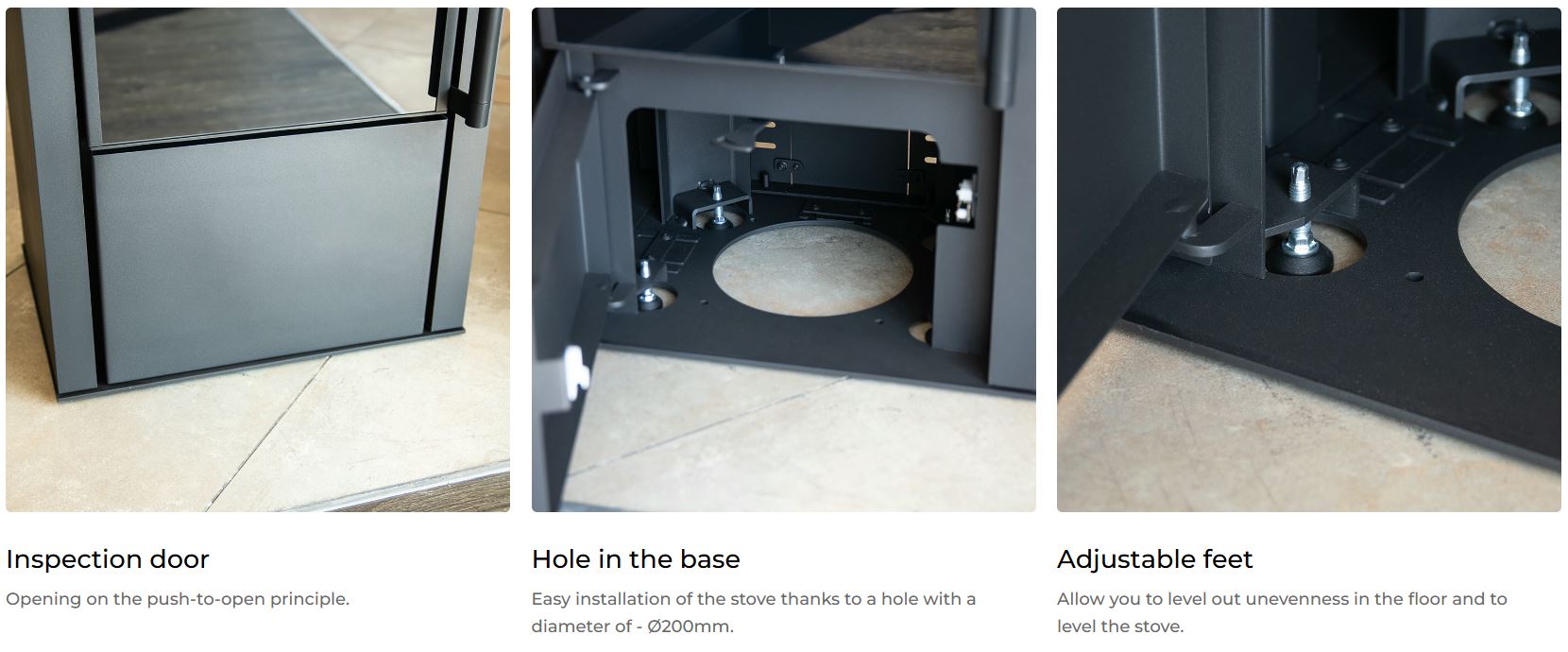 – easier stove installation thanks to a Ø200mm hole in the base,