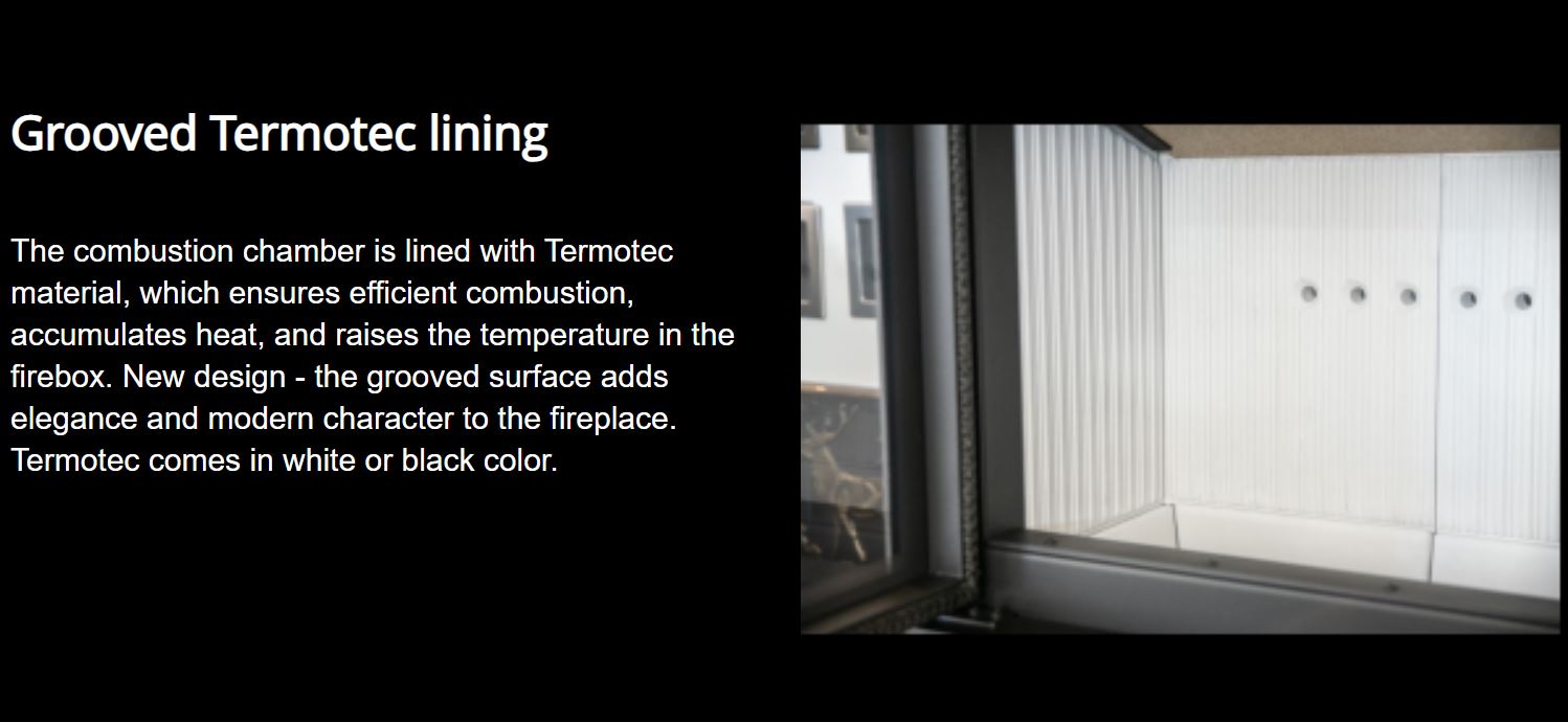 – Ribbed Termotec lining not only adds elegance but also effectively accumulates heat, raising the temperature in the furnace