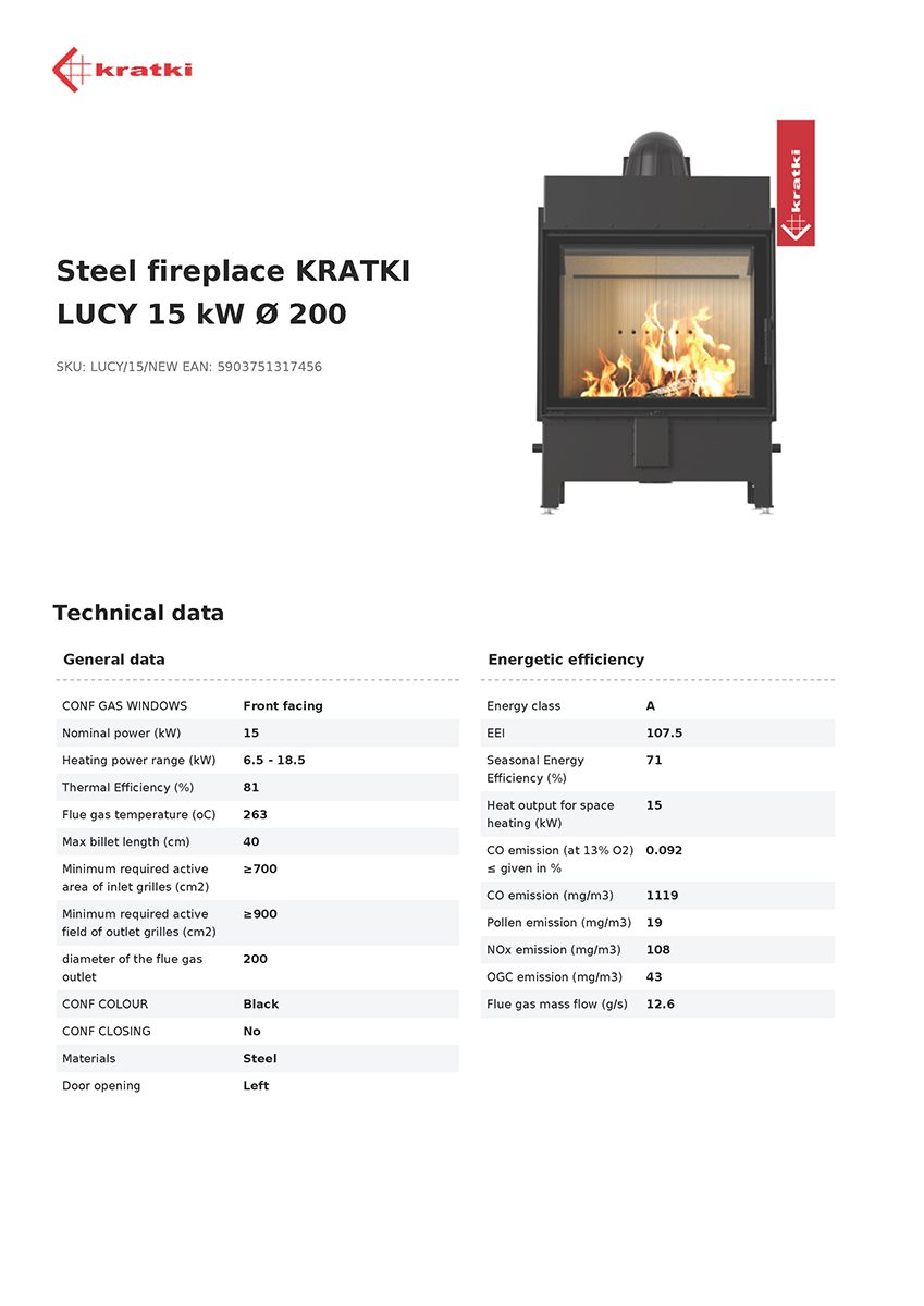 Steel fireplace KRATKI LUCY 15 kW Ø 200