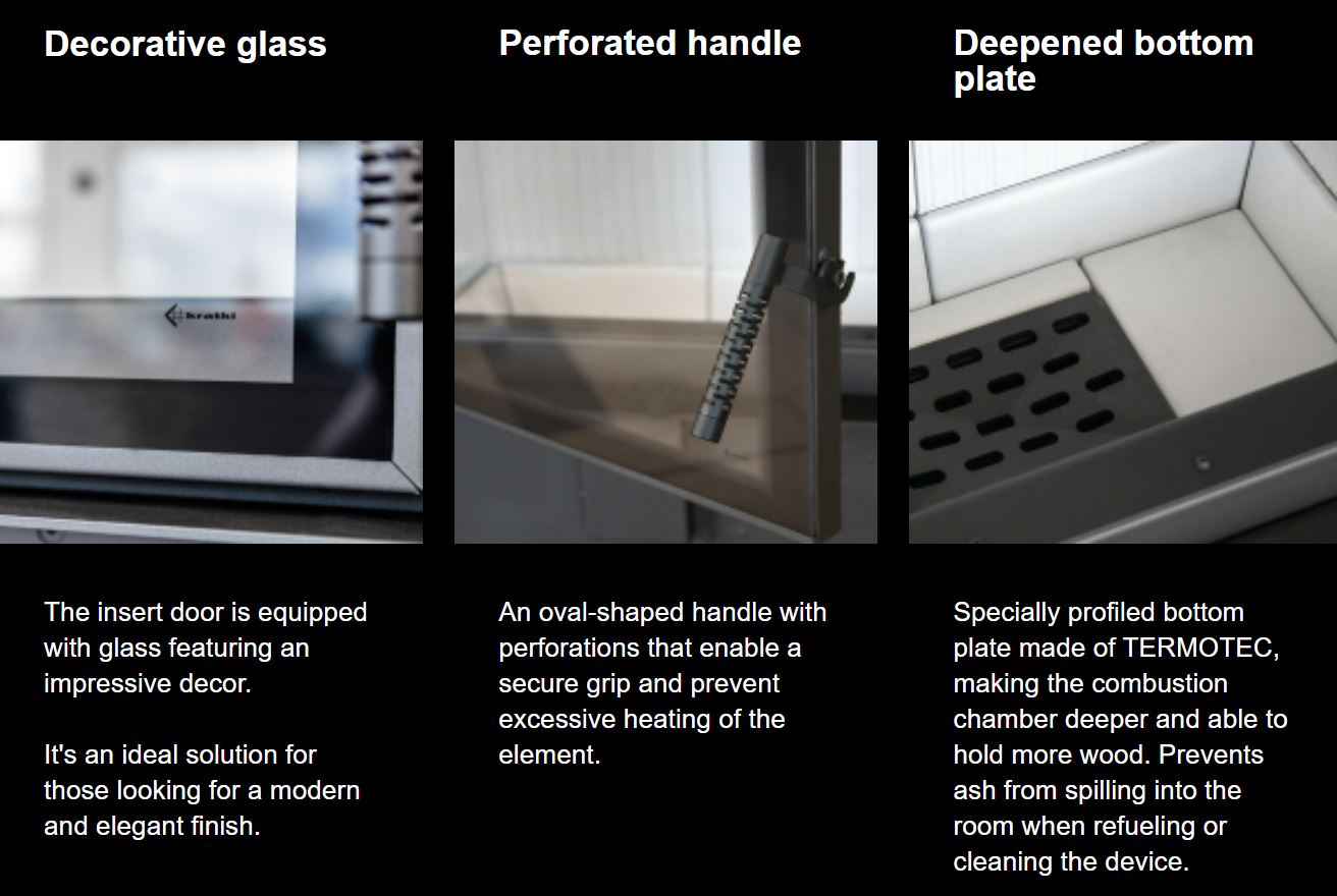 Proposal for those who cares about the maximum use of the heat from the insert. Advanced solutions ensure energy savings and make operation and cleaning of the device very easy.