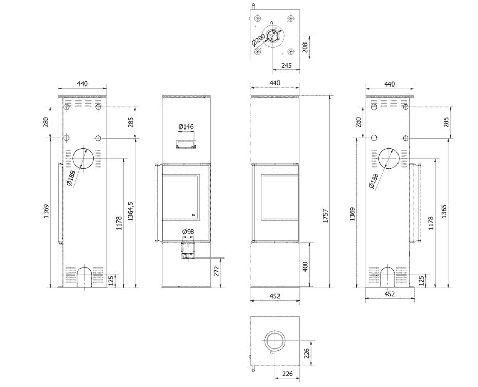 – Easy installation of the stove thanks to a hole in the base – Ø200mm,