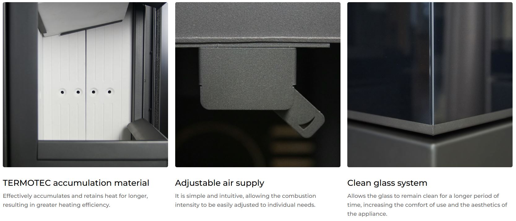 – longer temperature maintenance thanks to the lining of the combustion chamber with TERMOTEC accumulation material,