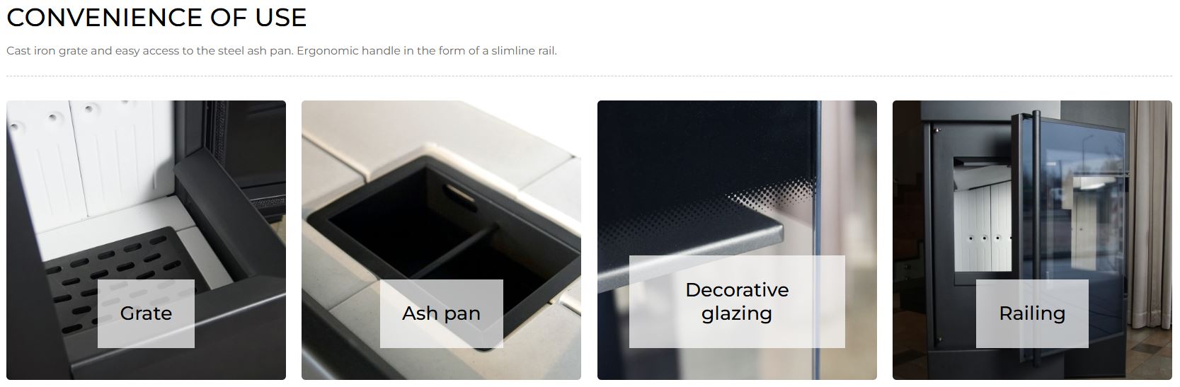 – cast iron grate and steel ash pan,